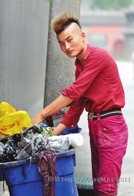 “嚯,快看那位捡破烂的小伙,发型好酷!”前日下午,在成都东门大桥油篓街一带,一位梳“莫西干头”、穿着红色带黑点的花衬衣、下身穿一条大红绣花女式牛仔裤的小伙,推着一辆自行车,挨着路边一个个垃圾桶搜寻破烂。由于小伙的发型和穿着极具“个性”,吸引了不少路人好奇的目光。