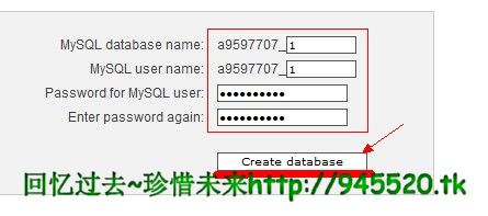 2.进入后在空白处填上你的数据库名称、用户名、密码(如下图)点击建立,名称最好简单的