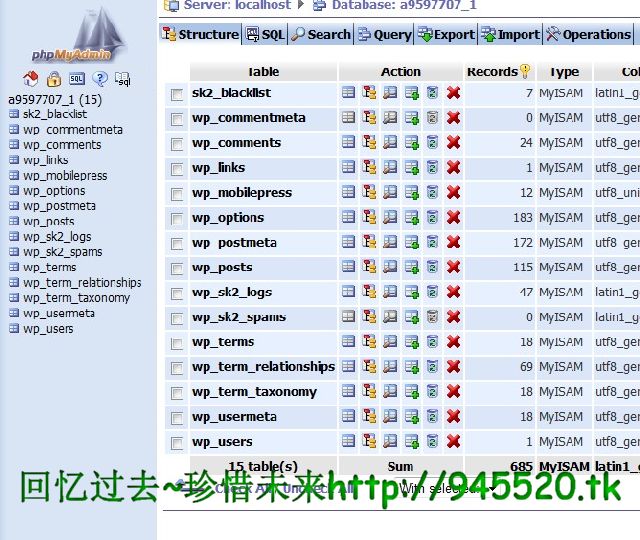 6.等待跳转出现下图,OK你的数据库建立成功了,我的因为已经开始使用所以有数据的^_^