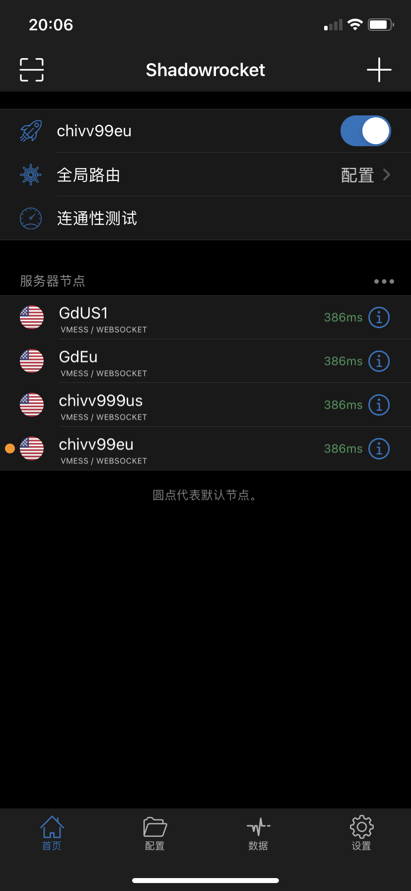 使用美区ID下载并安装小火箭后,将节点信息导入小火箭。就像小火箭里面自带的介绍一样,它只是一个工具,本身并不具有翻墙功能,需要我们自己添加节点之后才可以。
